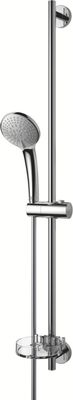 Avec barre en laiton 600 mm D.22 mm. Douchette 2 jets (pluie, aéré) avec limiteur de débit. Flexible inox double agrafage 1,50m écrou anti-torsion. Porte-savon, chromé.
